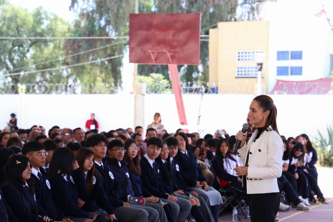 “Estoy empeñada, en que todas y todos los que salen de la secundaria, vayan directito a la preparatoria, y que, si salen de la preparatoria y quieren estudiar la universidad, vayan directito a la universidad o al tecnológico”, declaró Sheinbaum.